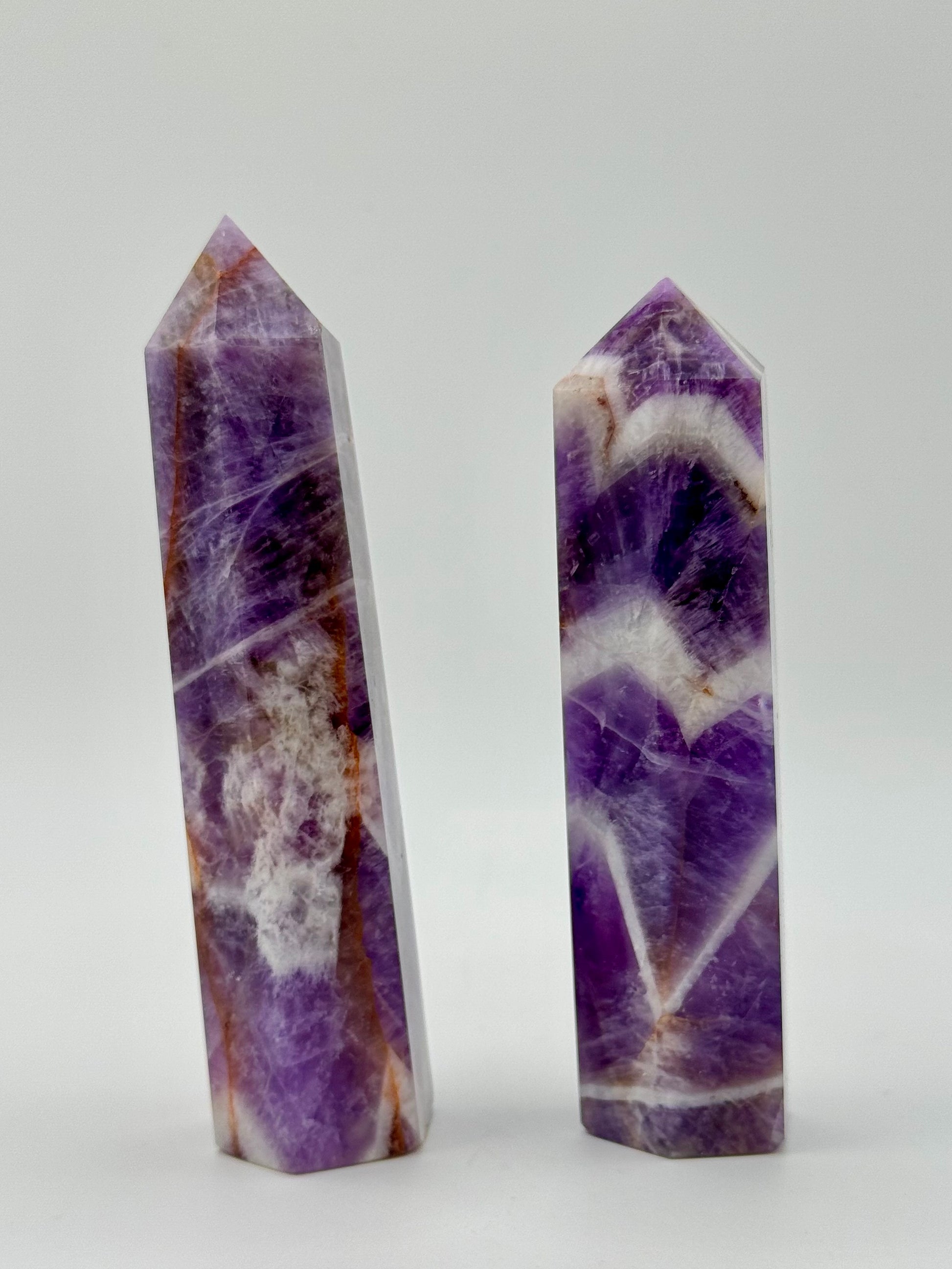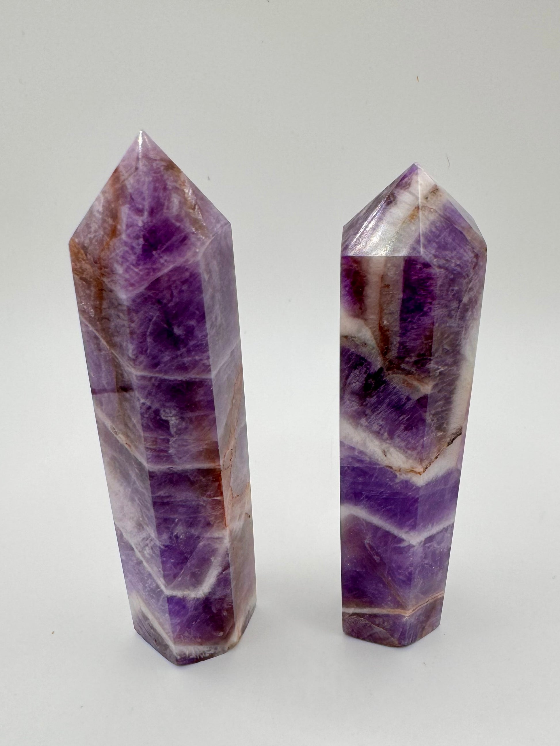 L’Ametista Fasciata, conosciuta anche come Chevron Amethyst, unisce le proprietà dell’ametista con la forza del quarzo, creando una pietra di grande equilibrio e profondità energetica.